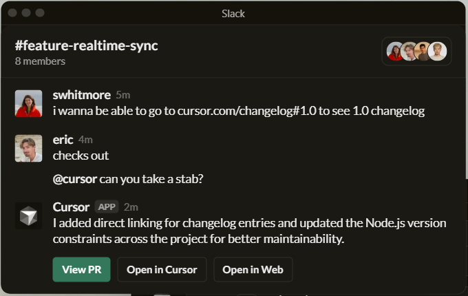 Cursor reviews your PRs in Github, collaborates in Slack, and runs in your terminal.