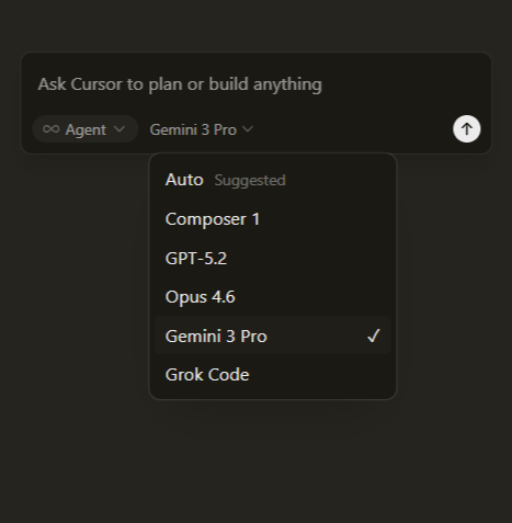 Choose between every cutting-edge model from OpenAI, Anthropic, Gemini, xAI, and Cursor.